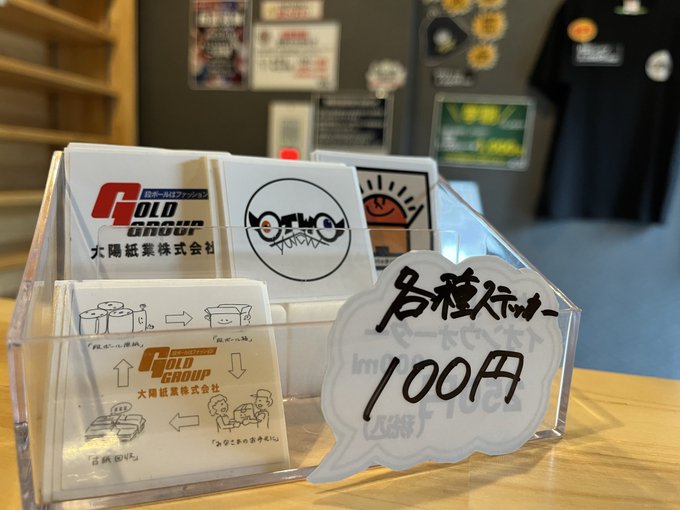 SNS等でも告知をさせて頂いていますが大陽紙業㈱とサンパック㈱のステッカーが熊本城サウナ 城の湯にて絶賛販売中です!
